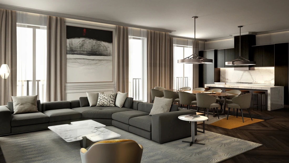 Роскошный видовой пентхаус с персональным входом и лифтом, площадью 242,3 м2 с высокими потолками, расположен на 9 этаже первоклассного клубного дома Fairmont & Vesper Residences. Лот передается с дизайнерской отделкой от основателя бюро "Rockwell Group" Дэвидом Роквеллом, в которой будут использованы исключительно высококачественные и дорогостоящие материалы: натуральный мрамор, ценные порода дерева и бронза. Пентхаус предлагается с новейшей многоуровневой системой очистки воды, централизованной системой кондиционирования и шумоизоляцией.