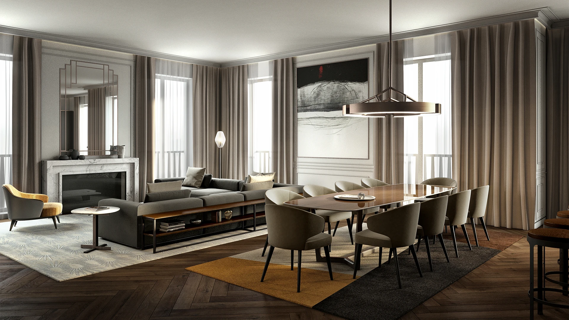 Девятиэтажный дом включает 43 апартамента площадью 84-284 м2 и просторный пентхаус на последнем этаже с окнами на четыре стороны площадью 1054 м2. Высота потолков в резиденциях от 3,35 до 4,05 метров. Подземный паркинг рассчитан на 89 автомобилей.
