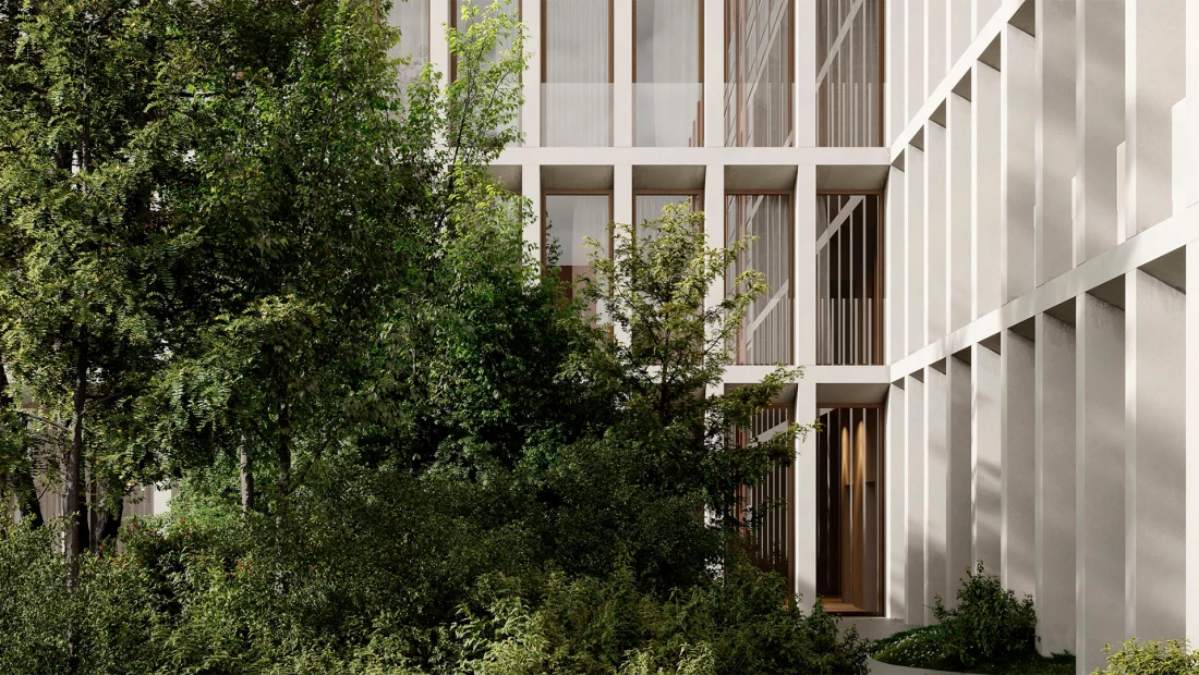 В доме – 24 квартиры от 63 до 223 м2 с потолками до 2,5 метров. На пятом этаже располагаются пентхаусы с каминами и террасами, открывающими вид на приватный двор с садом.