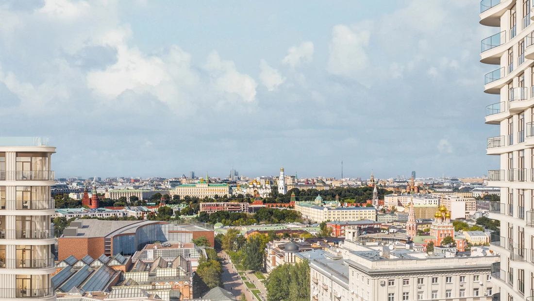 «Лаврушинский» — дом с лучшими видами на Кремль. Расположение в 1 км от Кремля, высота, низкие здания рядом, просторные балконы и террасы дают прямые виды на главные достопримечательности.