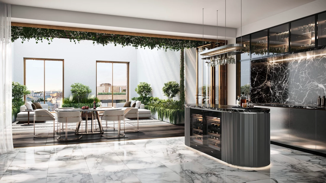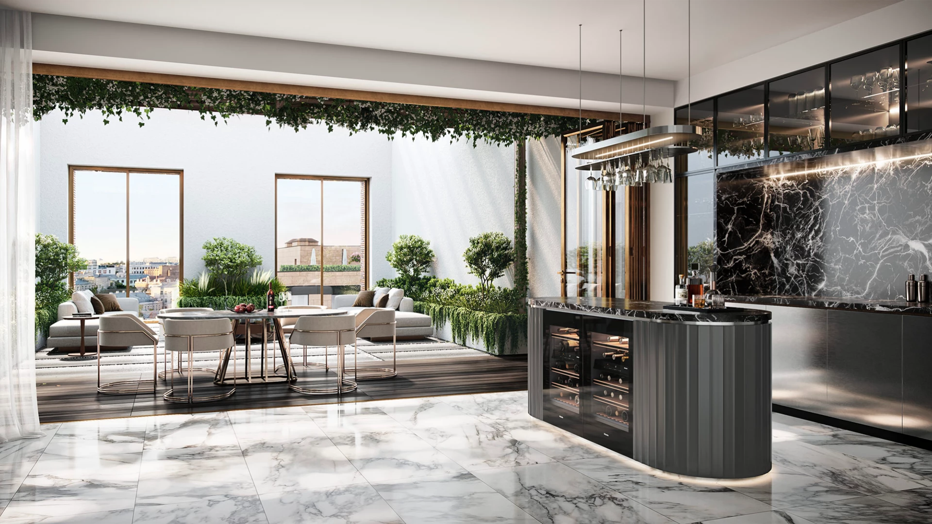 Роскошная резиденция площадью 458.30 м2 расположена на 8 этаже элитного жилого комплекса “Тессинский 1”. Планировкой предусмотрены гостиная с камином, объединенная с кухней, 4 спальни с ванными комнатами, гостевая уборная, гардеробная. Предусмотрен консьерж-сервис на высшем уровне, интегрирована система «умный дом». Два уровня подземного паркинга связаны с жилыми этажами лифтом. Все квартиры оснащены пожарной сигнализацией. Интеллектуальное приложение позволяет жильцам управлять всеми инженерными системами своей квартиры со смартфона.