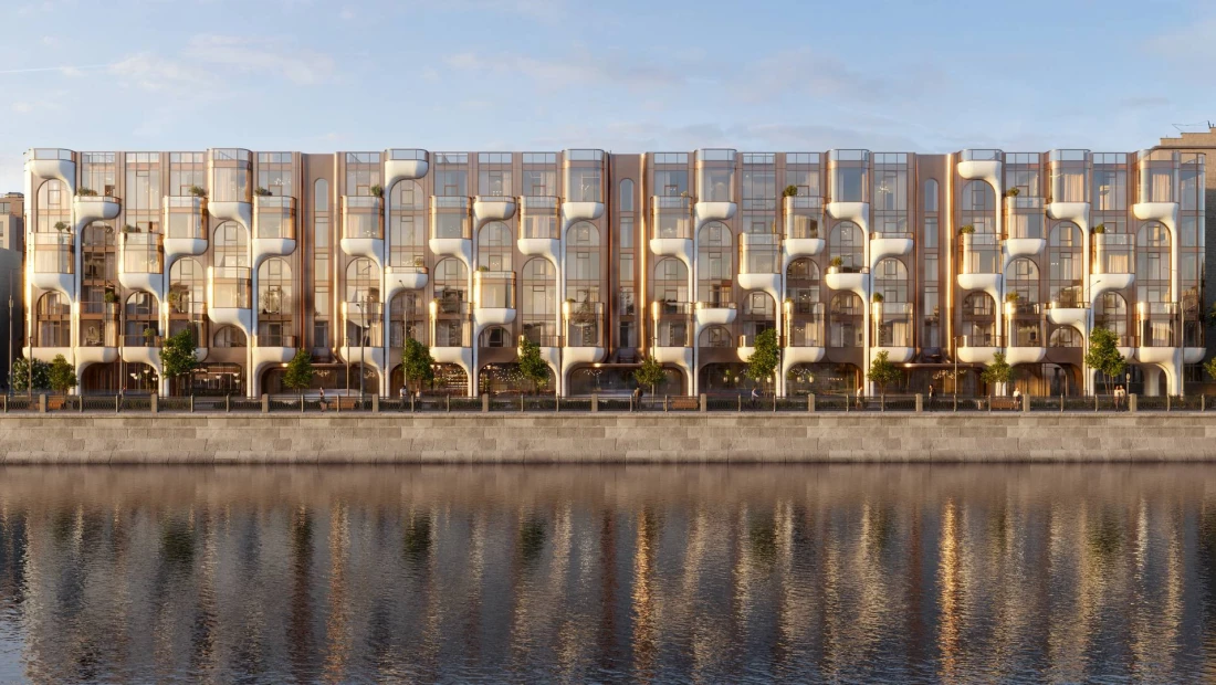 Тихая набережная вдали от городского шума. Самое сердце Москвы. Дом с уникальной архитектурой, отражающейся в глади воды.